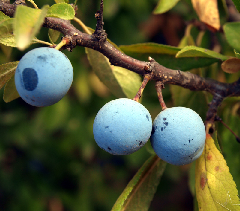 È indubbiamente il Prugnolo (Prunus spinosa) della famiglia delle Rosaceae la specie che rappresenta una fonte di cibo importante, specialmente in una stagione come questa, per molti animali, tra cui uccelli e mammiferi come lepri e volpi. I frutti di questa specie, le prugnole, possono essere consumati, al contrario delle specie di cui abbiamo detto finora, anche dagli esseri umani. Certamente hanno rappresentato una fonte di energia e vitamine per i nostri progenitori raccoglitori, mentre attualmente le prugnole vengono utilizzate per preparare marmellate, sciroppi, liquori, acquaviti e gelatine.